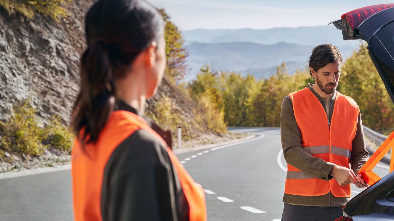Informace o škodě, stavu vozidla a místě nehody se automaticky odešlou a následuje rychlá osobní asistence prostřednictvím hlasového spojení, dokud na místo nedorazí pomoc. Máte také možnost ručně přivolat pomoc stisknutím tlačítka SOS v stropním obložení vašeho vozidla¹, např. v případě zdravotních potíží nebo nehody jiných účastníků silničního provozu.